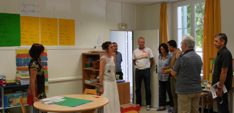 Michel Eyraud (adjoint au Maire délégué à l’éducation) représentant Patricia Granet (Maire de Digne), Christian Burgalessi (Directeur de l’école des Sièyes) et Franck Geiger (service éducation de la ville) étaient réunis Ecole des Sièyes pour présenter la rentrée scolaire tout en faisant le tour de l’établissement. Cette année la rentrée scolaire à Digne va s’effectuer malheureusement sous haute surveillance suite aux tragiques événements qui ont endeuillés notre pays. En effet des contrôles d’accès vont compléter ceux déjà existant et des systèmes contre l’intrusion vont être mis en place. Une classe supplémentaire va voir le jour pour les moins de 3 ans, elle s’inscrit dans la dynamique de revitalisation des quartiers classés prioritaires par l’Etat et les partenaires sociaux. Le transport est également une priorité car les élèves ne mangent pas tous dans la même cantine et un dispositif sera mis en place pour que tout le monde puisse se restaurer en temps et heure. Cette année marque également le rythme de l’Education Nationale avec cette réforme qui fait des vagues et qui ne manquera pas d’être houleuse pour certaines classes. Pour l’école des Sièyes cette année des travaux ont été entrepris pendant la période estivale et nombre d’huisseries ont été remplacées par des neuves plus aux normes. Autres points importants soulignés par Franck Geiger ; que les élèves soient le mieux accueillis possible, que les équipes éducatives les aident au plus juste (soutiens dont pourraient avoir besoin ces mêmes élèves) et qu’ils puissent s’épanouir en dehors du temps périscolaire. Comme vous pourrez le constater, le chantier est vaste mais pas insurmontable pour les 11 écoles de la ville et, c’est à noter, avec un nombre d’élèves plus important que l’année dernière sur les bancs des classes. Je vous propose d’écouter Michel Eyraud, Christian Burgalessi et enfin Franck Geiger ils répondent aux questions de Jean-Marc Léca.