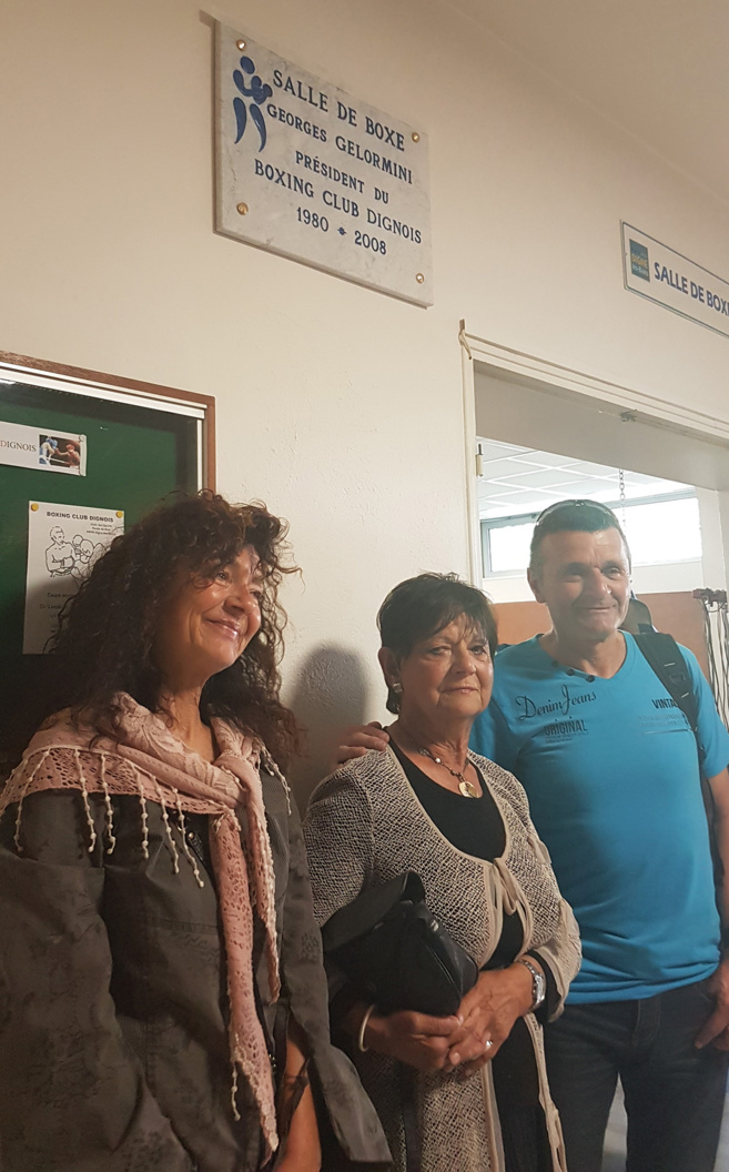 Pratiquant le noble art, Georges a été en 1980 l’un des fondateurs et vice président du boxing club dignois. Une assistance nombreuse et émue d’amis était présente autour de la famille pour inaugurer la plaque portant son nom. Au micro d’Odile Frison, sa veuve Renée Gélormini, puis sa fille Maryline, éducatrice sportive dans les écoles et enfin Patricia Granet-Brunello maire de Digne-les-Bains.