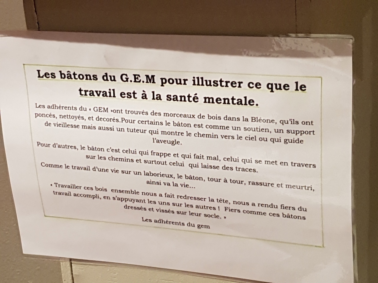 Beaucoup d’émotion au Centre culturel René Char lors du vernissage de l’exposition des créations artistiques réalisées par les usagers des structures médico-sociales, associations et services de soins de la ville de Digne. Organisé dans le cadre de la semaine d’information en santé mentale, l’instant a suscité émotion mais aussi admiration de la part du public nombreux pour l’occasion. Un travail artistique qui n’a pas été très facile pour Zouïna au moment de la réalisation nous confie-t-elle, puisqu’il fallait exprimer sur du bois à l’aide de craie ou de peinture, ses problèmes psychiques. Mais malgré les douleurs, et l’émotion, le résultat final est une fierté aujourd’hui. Vous l’entendrez au micro d’Odile Frison, mais tout d’abord Sophie Garcia coordinatrice du Conseil Local en santé mentale. Puis Maryse Bravin animatrice au GEM (groupe d’entraide mutuelle) La Colombe dignoise. L’exposition est à voir dans la salle blanche du Centre culturel René Char à Digne-les-Bains toute cette semaine.