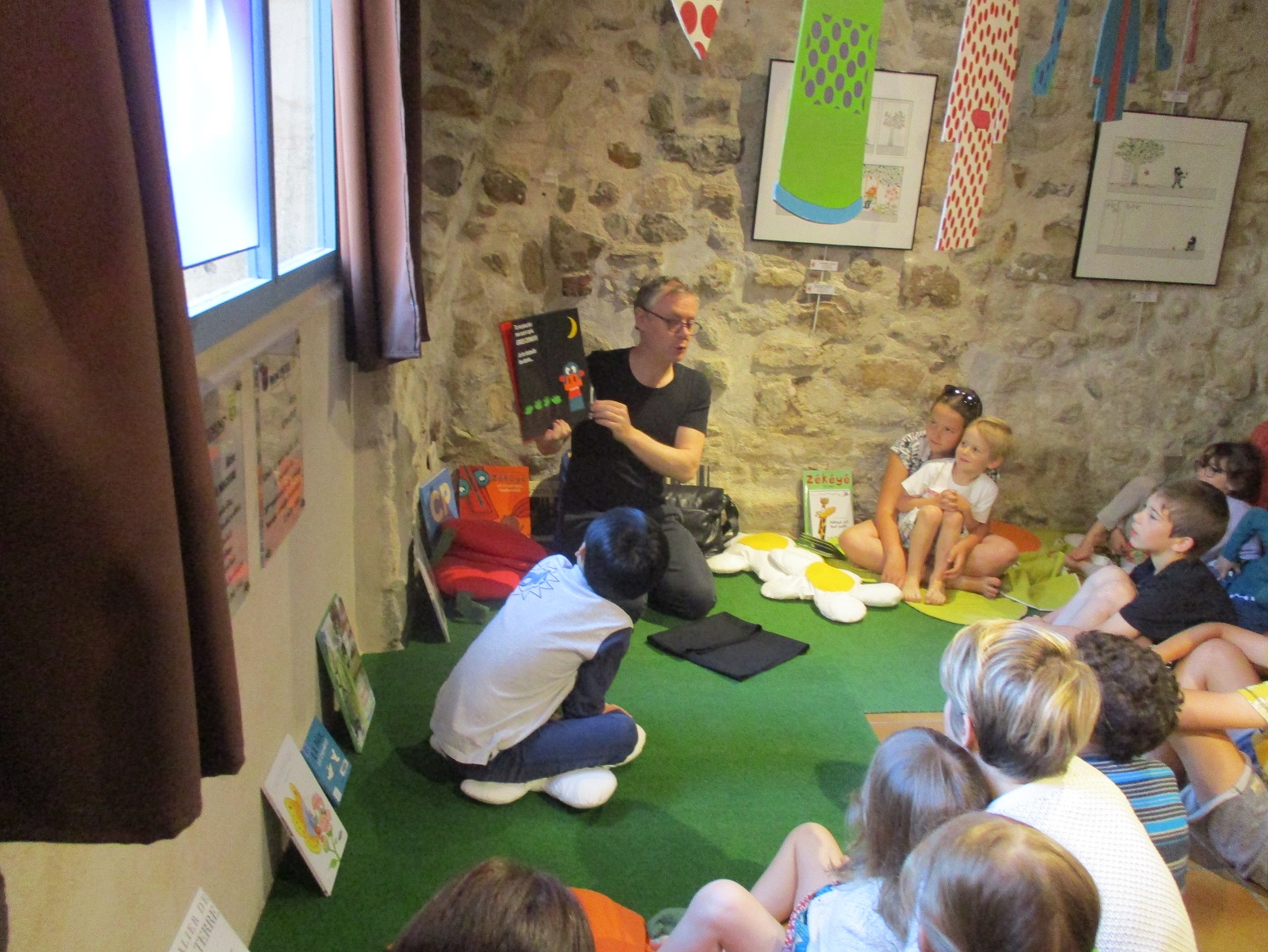 Auteur-illustrateur prolifique depuis une vingtaine d’années, Edouard Manceau était l’invité d’honneur de la Fête du livre jeunesse organisée par les associations Eclat de Lire et Croq’ Livres. Il a eu carte blanche pour inviter la plupart des intervenants de la fête ce qui s’est avéré réussi. Huit jours durant, il s’est donc démultiplié à Forcalquier et Manosque pour rencontrer des lecteurs et fournir des animations originales. A l’image de celle de samedi à la médiathèque d’Herbès où il a invité les enfants présents à créer leurs propres personnages et inventer leurs propres histoires. Lui-même racontant celle d’un cauchemar-cornichon qu’il a publiée et dont la traduction en coréen a ravi un jeune lecteur qui se souviendra longtemps de cette rencontre. Je vous propose d’écouter Edouard Manceau parler de son métier d’auteur-illustrateur et de la Fête du livre jeunesse et d’abord sa réaction lorsqu’on lui a demandé d’être l’invité d’honneur de l’édition 2017.