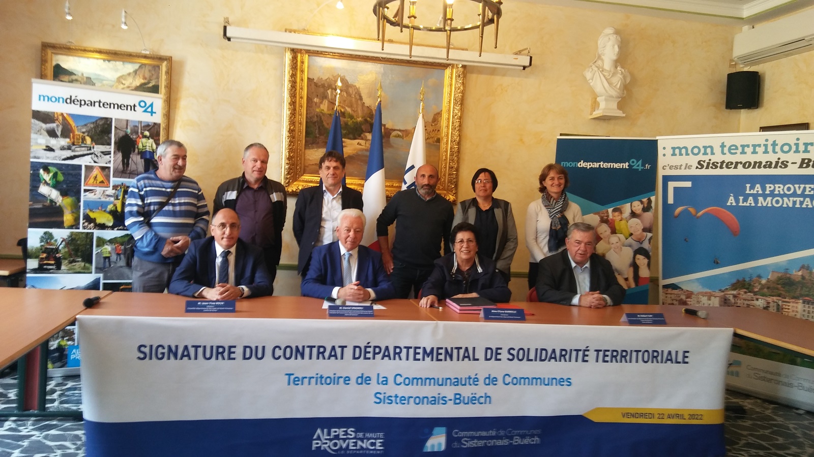 Peu de maires présents à la signature de la convention entre le Département et Sisteronnais-Buëch, c’est dommage mais il est vrai que le choix d’un rendez-vous en début d’après-midi est délicat pour des élus en activité. Ces derniers devront parapher les conventions les concernant et délibérer dans chaque conseil pour ce faire.
