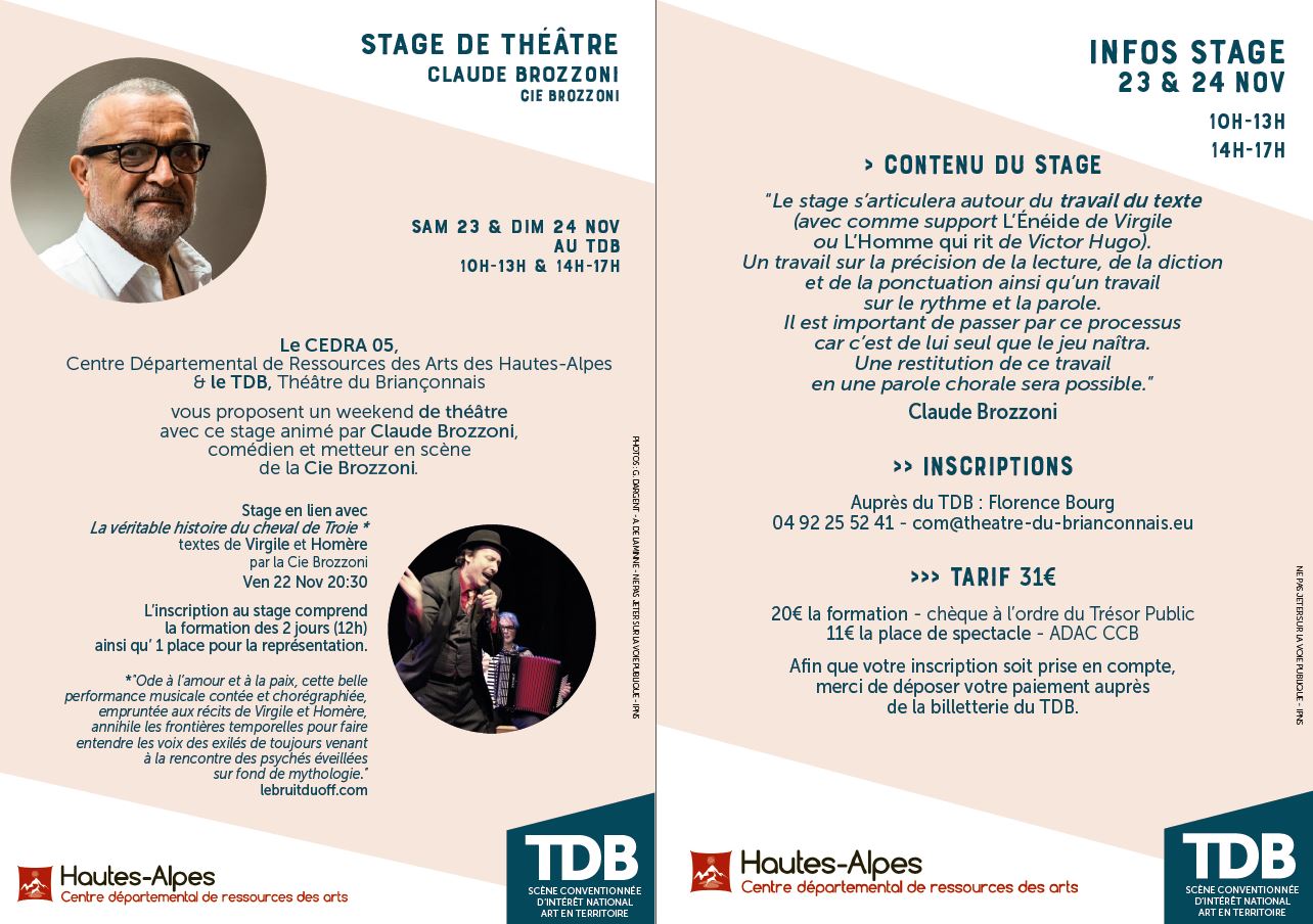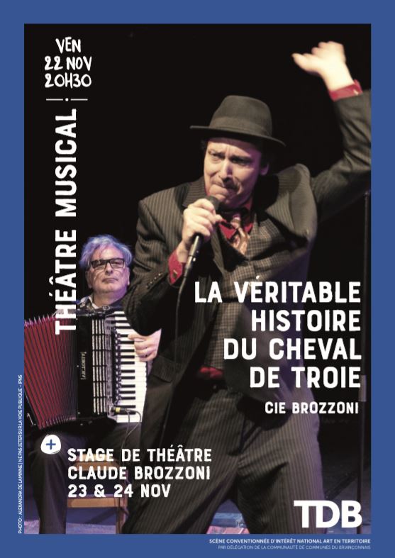 Le metteur en scène, Claude Brozonni, présente son spectacle « La véritable histoire du cheval du Troie » au TDB ce 22 novembre. Également il présente son stage de théâtre qui se déroulera ce weekend au micro de Susannah Wright.