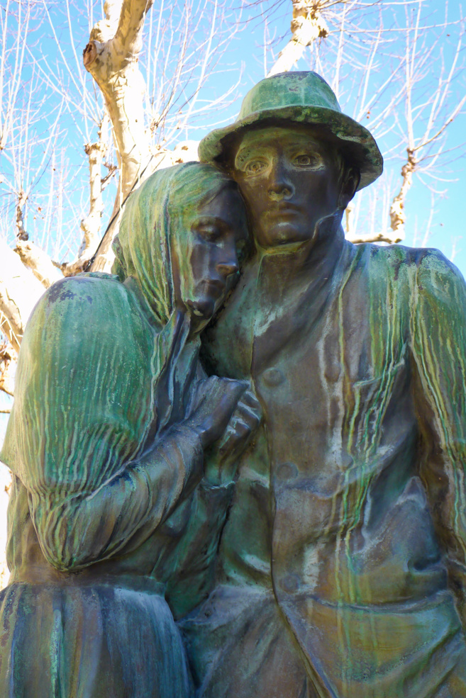 Cette œuvre de Paul Bloche datée de 1901 est arrivée en train à Manosque après avoir été acquise par l'Etat et prêtée à la ville de Giono en 1954 où elle a trouvé sa place sur ce qui s'appelait encore la promenade de la Plaine. Depuis 9 mois environ, son propriétaire, le Musée d'Orsay exige par missives interposées à destination de la mairie qu’elle soit « mise à l’abri ». Comprenez qu'elle ne soit pas accessible par la route à des véhicules mal intentionnés.