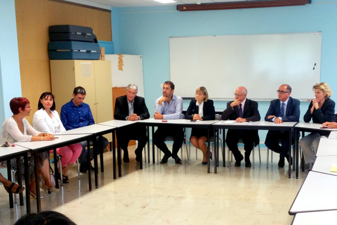 Un invité de marque auprès d’autres personnalités a accompagné la rentrée scolaire à Château-Arnoux. Un véritable cortège a rejoint le Maire Patrick Martellini au collège Camille Reymond après la traditionnelle visite aux écoles de sa commune. Avec le Recteur Bernard Beignier, la Préfète des Alpes de Haute-Provence Patricia Willaert ou bien encore le député-maire Christophe Castaner et des fonctionnaires de l’Education nationale. Tous ont profité d’une visite dans les classes, guidées par Isabelle Hervet-Bilello, principale du collège. Le Recteur d’Académie et le Maire de Château-Arnoux Saint-Auban dressent un bilan de cette rentrée au micro de Paul Bosson. Patrick Martellini évoque les traumatismes sociaux subis par sa commune et l’obligation d’adapter son offre scolaire mais d’abord, Bernard Beignier confirme le bon déroulement de la rentrée dans le département.