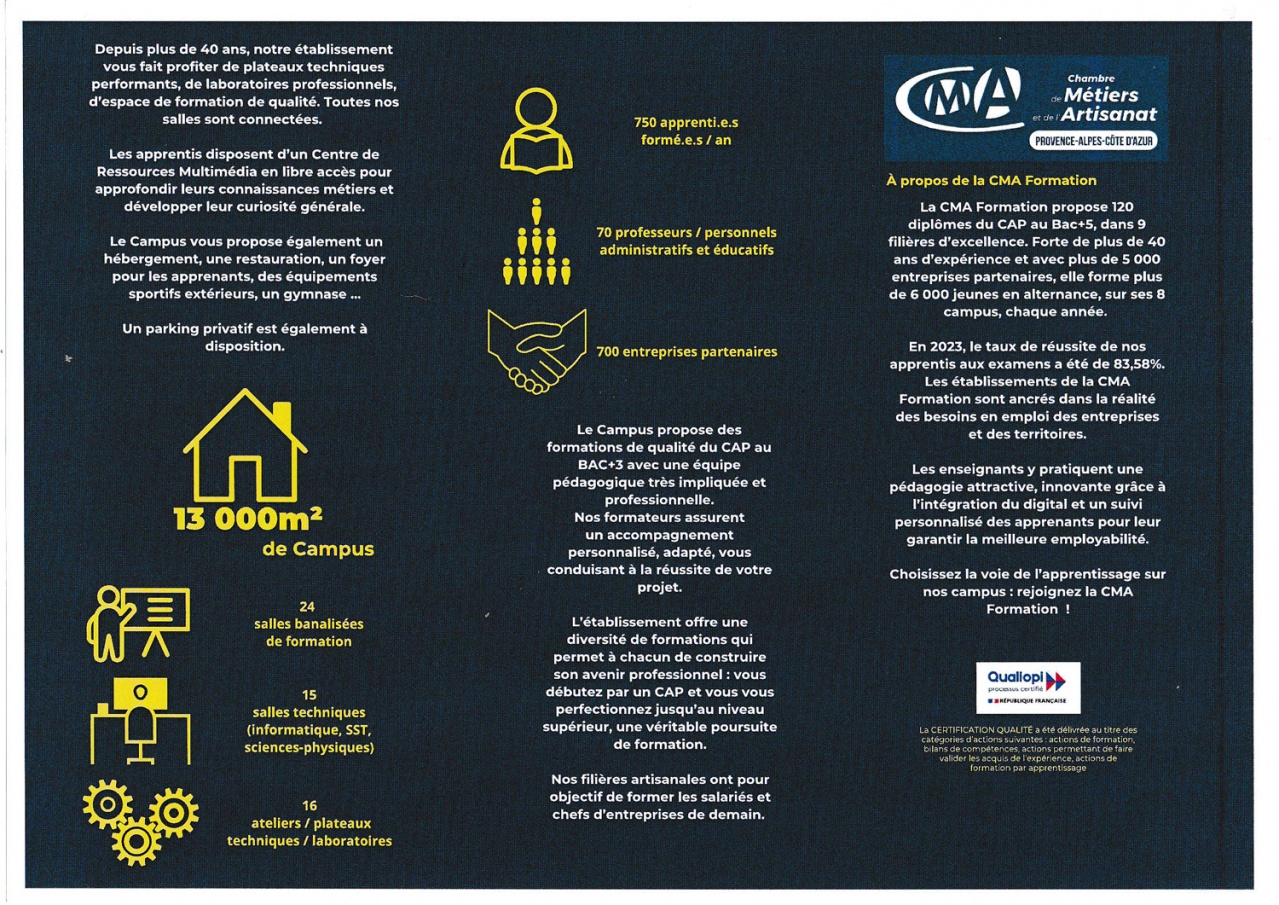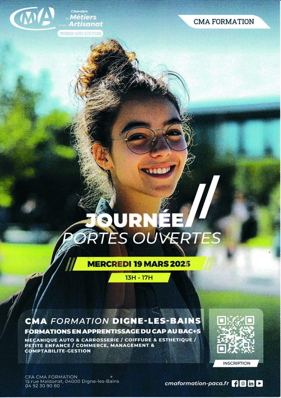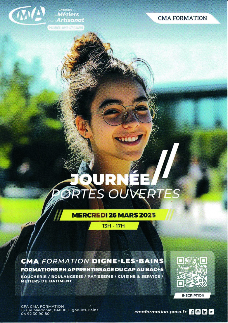 CMA Formation Digne-les-Bains accueille le public lors de trois journées portes ouvertes, les 19, 22 et 26 mars 2025.