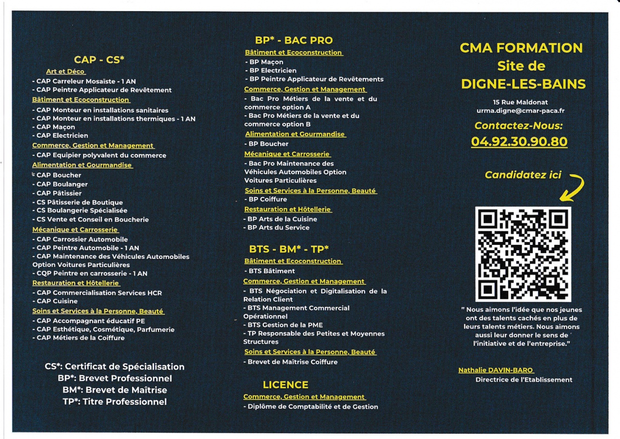 Pour plus d'infos le lien du site de CMA Formation de Digne les bains ICI :