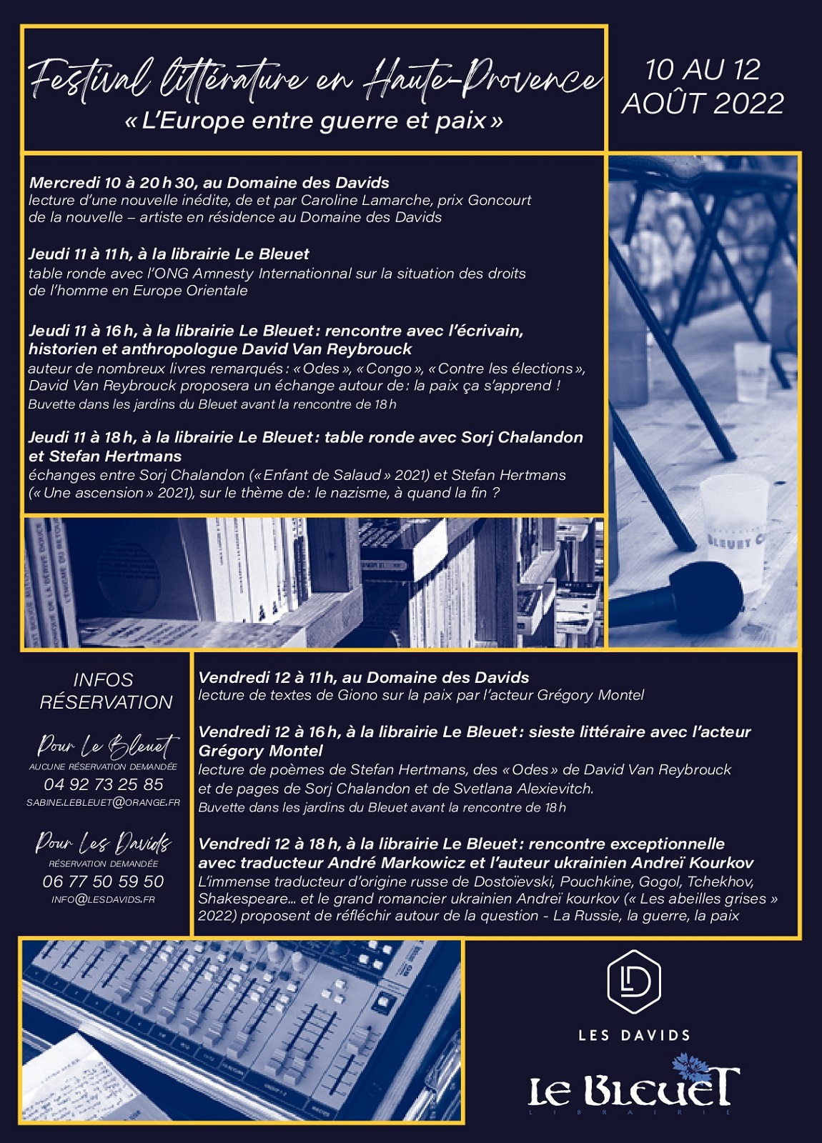 "L'Europe entre guerre et paix" c’est le thème de la 2ème édition du festival "Littérature en Haute-Provence" qui aura lieu du 10 au 12 août 2022 à la librairie Le Bleuet à Banon et au domaine Les Davids.