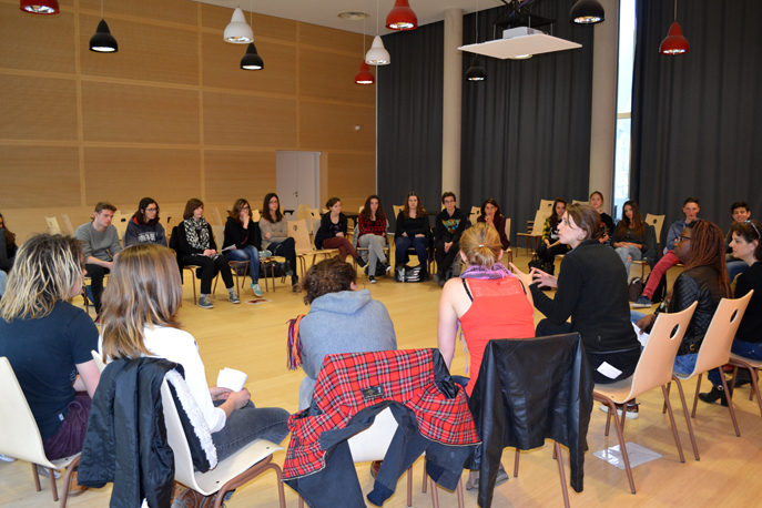 Le CEMEA (Centre d’entraînement aux méthodes d’éducation active) est une Association partenaire du Festival d’Avignon depuis pratiquement sa création, et propose d’accueillir de jeunes lycéens durant le Festival. Hélène Chevalier animatrice du CEMEA est venue au sein du lycée Pierre Gilles De Gennes, présenter le déroulement et la prise en charge des jeunes durant le Festival d’Avignon. Ces séjours accueillent plus de 600 lycéens et apprentis en CFA. Ils sont préparés en amont par les équipes d’animation des CEMEA en concertation avec les enseignants et les responsables des politiques culturelles des Conseils régionaux. L’objectif est de réunir des jeunes issus d’une diversité de cursus scolaires (lycées, centres de formation d’apprentis, lycées professionnels…) ayant une pratique ou non du théâtre. Deux axes structurent le travail d’accompagnement du spectateur que les CEMEA proposent aux jeunes lycéens : la préparation à assister à des spectacles de la programmation « in » et un accompagnement à la découverte du festival et de la programmation « off ». Les séjours d’une durée de 4 à 5 jours alternent des spectacles, des ateliers d’activités d’expression artistique, en relation avec spectacles vus (ateliers de lecture, d’écriture, d’improvisation, de danse, d’activités plastiques….), des échanges et des rencontres avec les équipes artistiques autour de leur travail de création. Je vous propose d’écouter Hélène Chevalier du CEMEA, puis Aurélie et Nicolas lycéens à Pierre Gilles De Gennes. Ils répondent aux questions d’Odile Frison.