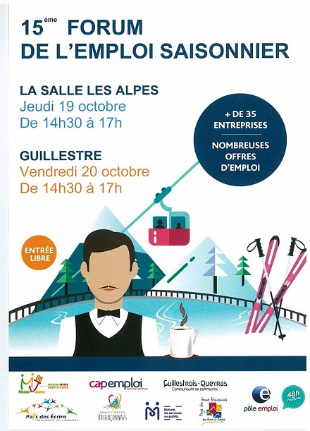 Dans le cadre des 48 heures pour l’emploi dans la région PACA, Pôle Emploi Briançon organise le 15ème forum de l’emploi saisonnier, qui aura lieu le 19 octobre à La Salle les Alpes et le 20 octobre à Guillestre. Ce forum permet aux employeurs de recruter efficacement avant le démarrage de la saison touristique d’hiver. Les candidats peuvent postuler cette année à plus de 80 offres d’emploi à La Salle les Alpes et 30 offres à Guillestre dans les métiers de l’hôtellerie-restauration, de l’animation et des loisirs d’hiver. Valérie Muess, responsable d’équipe de Pôle Emploi Briançon, présente l’événement au micro de Susannah Wright.