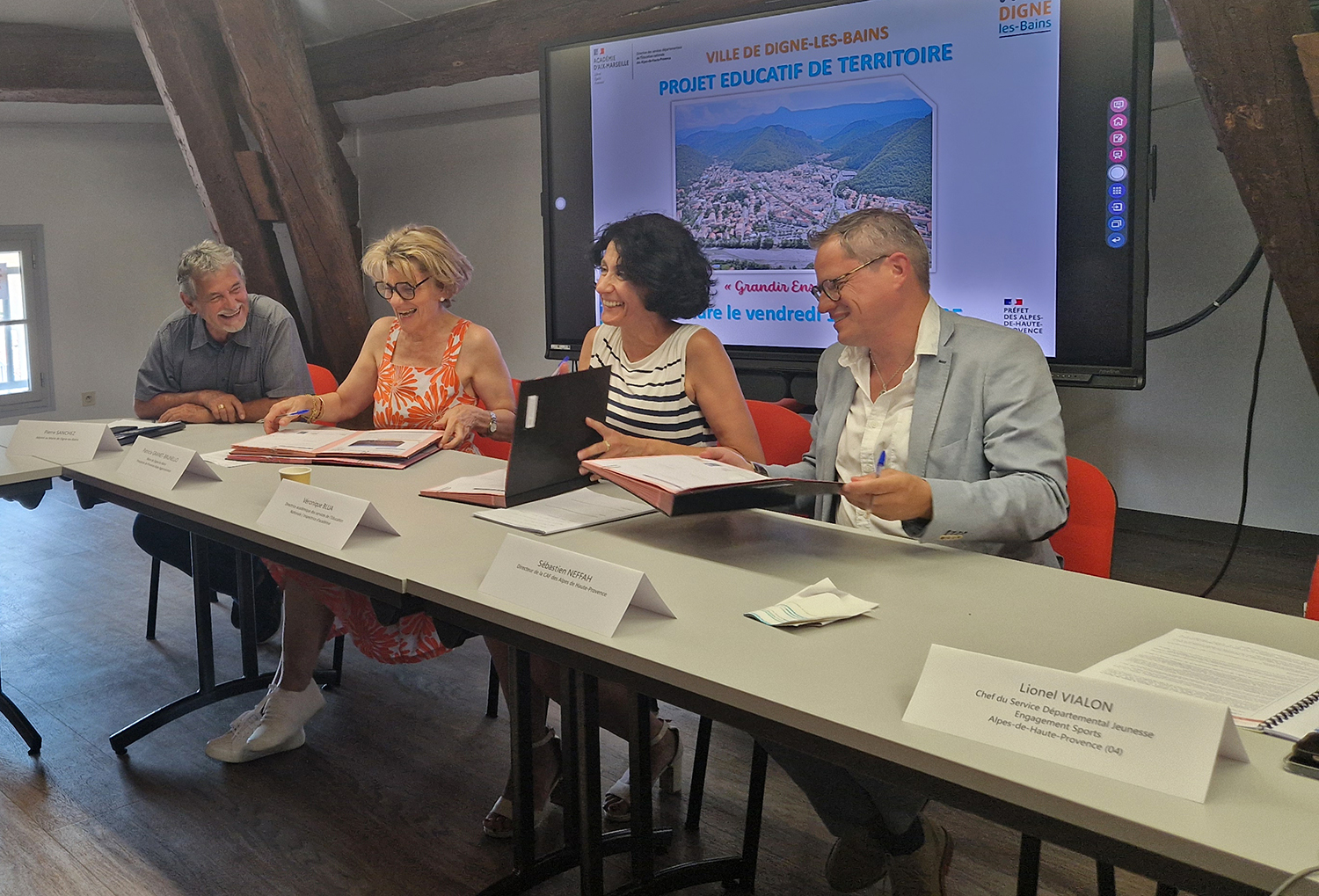Un an et demi de travail et de concertation pour élaborer ce projet éducatif de territoire signé ce jour par le préfet Marc Chappuis (représenté par l'inspectrice d'académie, directrice académique des services de l'éducation nationale des Alpes de haute Provence Véronique Blua), le directeur de la CAF des Alpes de haute Provence Sébastien Neffah et Patricia Granet-Brunello maire de la ville de Digne les bains, Présidente de PAA.