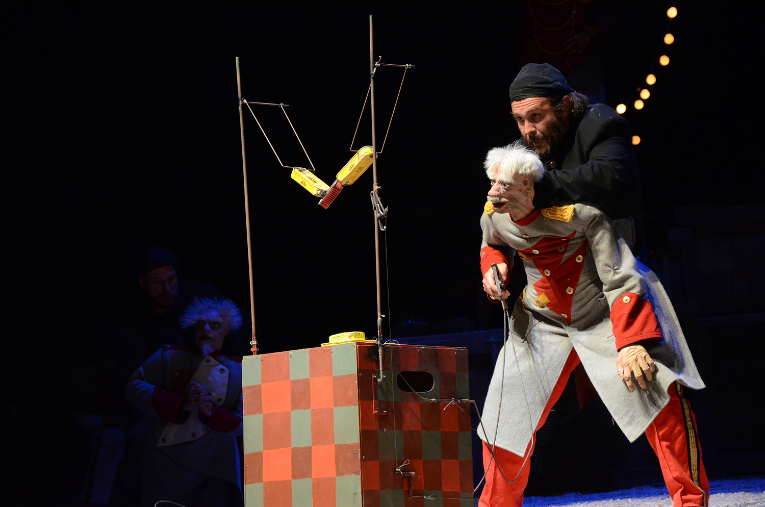 Au diable l’arthrose et la routine ! L’heure du grand chamboulement a sonné. Les encombrants reprennent en main leurs vieux os pour remonter un spectacle qui fût jadis l’un de leurs plus gros succès : Le Bestiaire Forain. Un cirque inhabituel et fantastique, où se jouaient, dans la plus pure tradition, des numéros de domptage sans pareil. Douze ans ont passé, la bande de vieux forains en charentaises réinvestit l’arène. Leurs animaux métalliques reprennent vie sous nos yeux. Mante religieuse, requin, rhinocéros… Ces étonnantes machines nous font goûter aux joies de la bidouille, de l’improbable et du sensible. Dans cet univers un brin récup’, les personnages sont incarnés par des marionnettes à taille humaine à l’allure tendre et désuète. Qu’importe le poids des années, leur énergie est salvatrice, leur poésie bancale, onirique et absolument irrésistible.