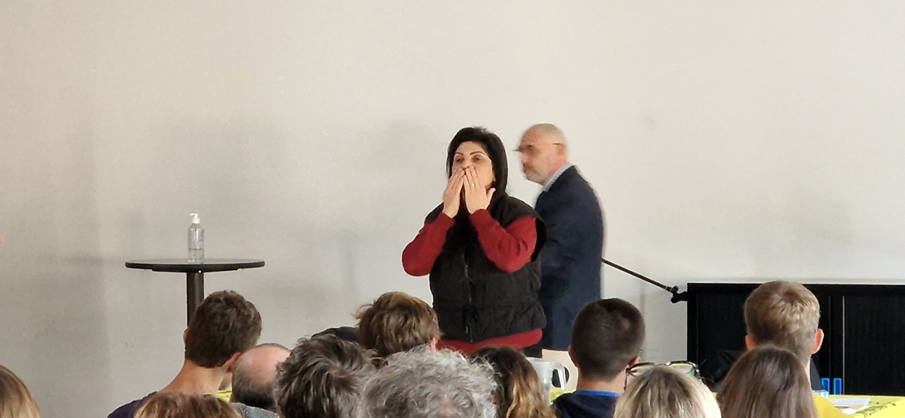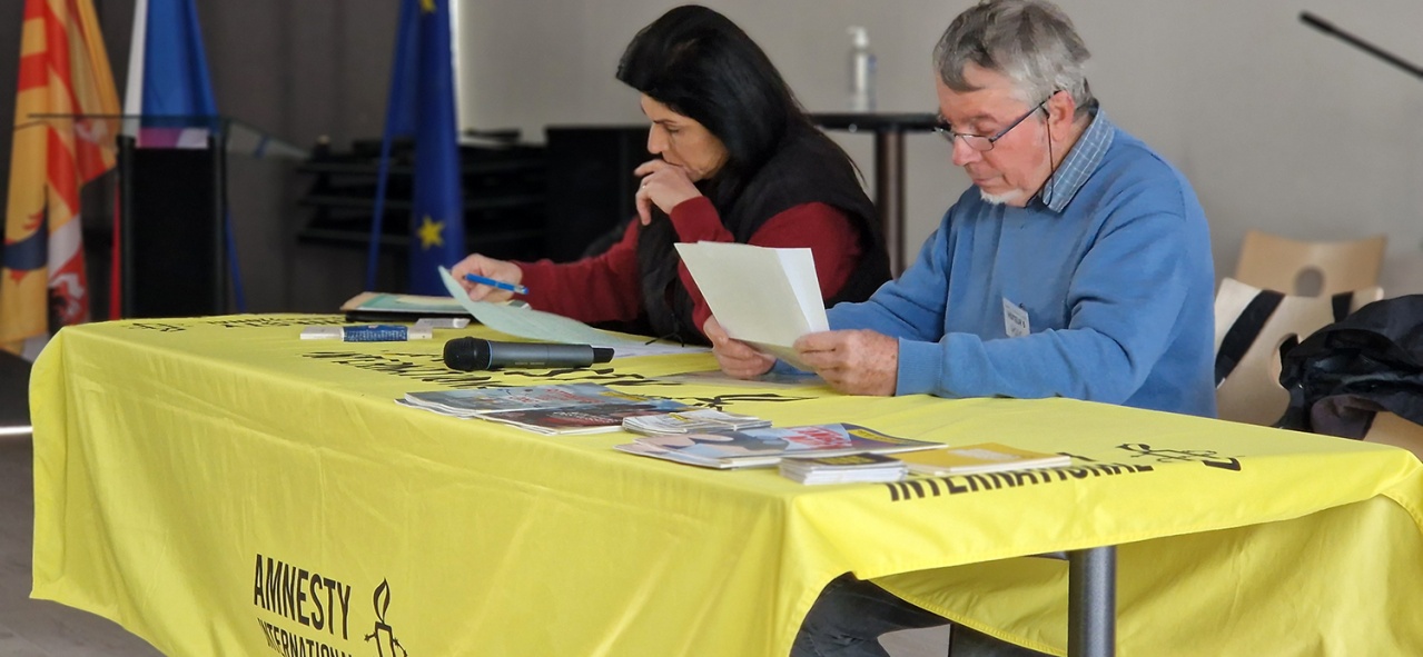 Antoinette Chahine était accompagnée de Régis Coulange Responsable formation Amnesty international.
