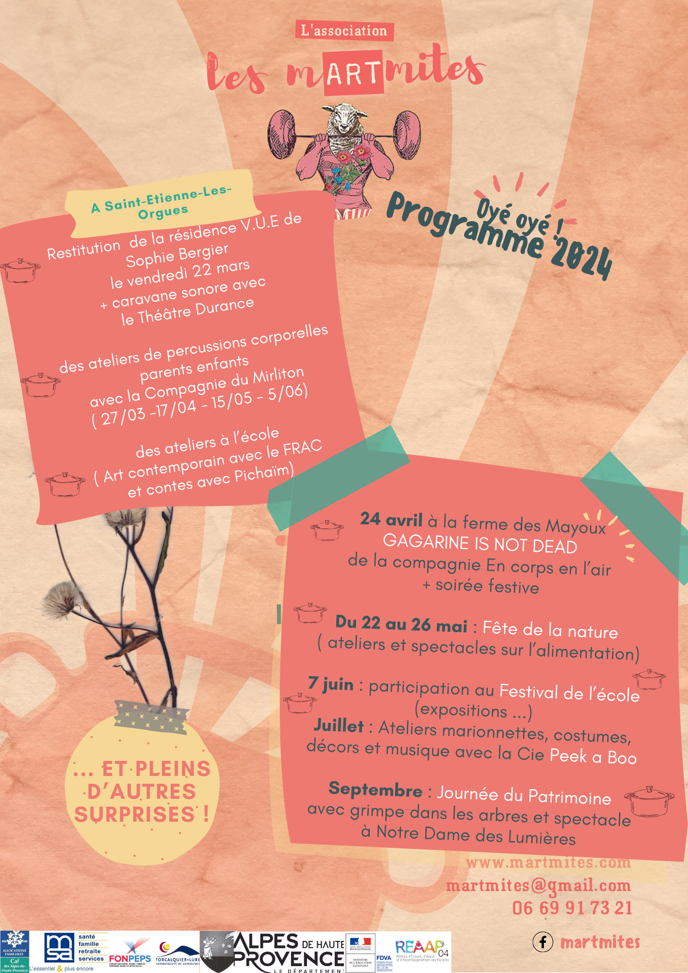 Les mARTmites sont cette année en résidence à St Etiennes les Orgues, où sont développés plusieurs projets et événements socio-culturels.