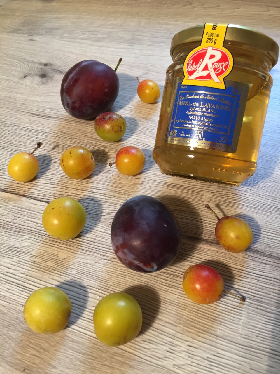 Préparation du clafoutis aux mirabelles de la Javie, au miel d’Aiglun, poudre d’amandes de Valensole :