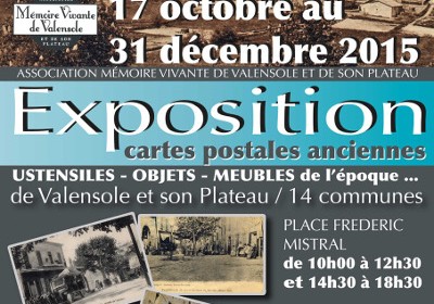 Mémoire Vivante de Valensole Et de son plateau, jeune association audacieuse présente jusqu'au 31 décembre une Exposition de cartes postales anciennes de Valensole et son plateau, avec les communes d'Allemagne-en-Provence, Brunet, Gréoux-les-Bains, Montagnac-Montpezat, Moustiers-Sainte-Marie, Puimoisson, Quinson, Riez, Roumoules, Saint-Julien, Saint-jurs, Saint-Martin-de-Brômes, Sainte-Croix-du-Verdon, et Valensole.