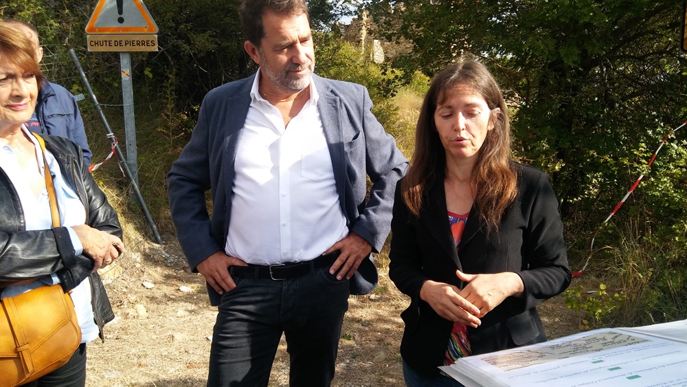 Récemment, dossier et plans en main, Camille Feller et des adjoints de Montlaux accompagnés de Patrick Claude de l’association « Au pied du mur » ont guidé le député Christophe Castaner et la déléguée de la Fondation du Patrimoine Marie-Françoise Brunel sur les lieux du Vieux Montlaux.