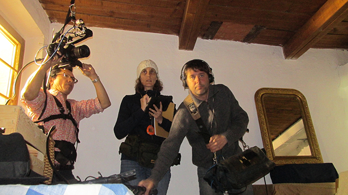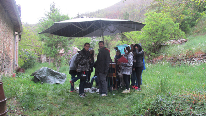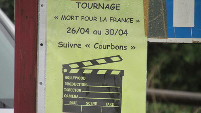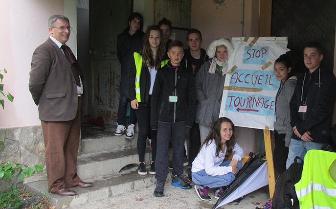 5 jours de tournage à Courbons pour les collégiens de l’association Cinéma etc du Gassendi. C’est au cours des vacances scolaires qu’ils on entamé le tournage du court-métrage Mort pour la France. Ils étaient accompagnés de certains membres du personnel du collège, devenu acteur le temps de l’aventure. L’association Cinéma etc comptabilise son 18ème court métrage. Et l’équipe de techniciens s’est étoffée de professionnels pour ce nouveau projet. Avec la présence de deux comédiens professionnels Marie -Aude Barrez et Nicolas Moisi. Date de sortie du court métrage « Mort pour la France » début Juin 2015, pour une projection public à Digne les Bains. Odile Frison a eu le privilége d’assister au 1er jour de tournage dans ce joli village de Courbons. Un premier jour pluvieux, il a donc fallu intervertir l’ordre des scènes extérieures, et intérieures. Mais pas de quoi entamer l’enthousiasme d’ l’équipe ni d’entacher les souvenirs qui resteront gravés pour beaucoup, notamment pour le principal du Collége Gassendi Philippe Benoit-Lizon, devenu acteur quelques secondes dans une scène très émouvante face à l’actrice professionnelle Marie-Aude Barrez. Laetitia Laignel co-présidente de l’association Cinéma etc est, cette fois-ci, 1ère assistance réalisation. Je vous propose de l’écouter, puis nous entendrons le témoignage du Principal du Collège, Philippe Benoit-Lizon. Laetitia Laignel.
