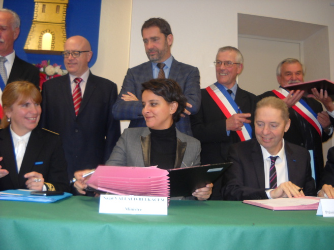 Juste avant de se rendre à Marseille pour visiter des écoles en souffrance, la Ministre de l’Education Najat Vallaud-Belkacem était dans les Alpes du Sud. Le but de sa venue : rappeler l’attachement du Ministère aux territoires ruraux. En signant une convention « ruralité » Najat Vallaud-Belkacem entend accompagner les départements ruraux et de montagne dans l’amélioration d’un réseau scolaire de qualité et de proximité. Une première rencontre à l’Argentière-La-Bessée pour évoquer des travaux réalisés aux abords d’une école et au collège puis direction le 04 où c’est à l’école du Castellet d’Oraison qu’elle a rencontré enseignants, élèves, syndicats et élus avant de signer la nouvelle convention « ruralité ».
