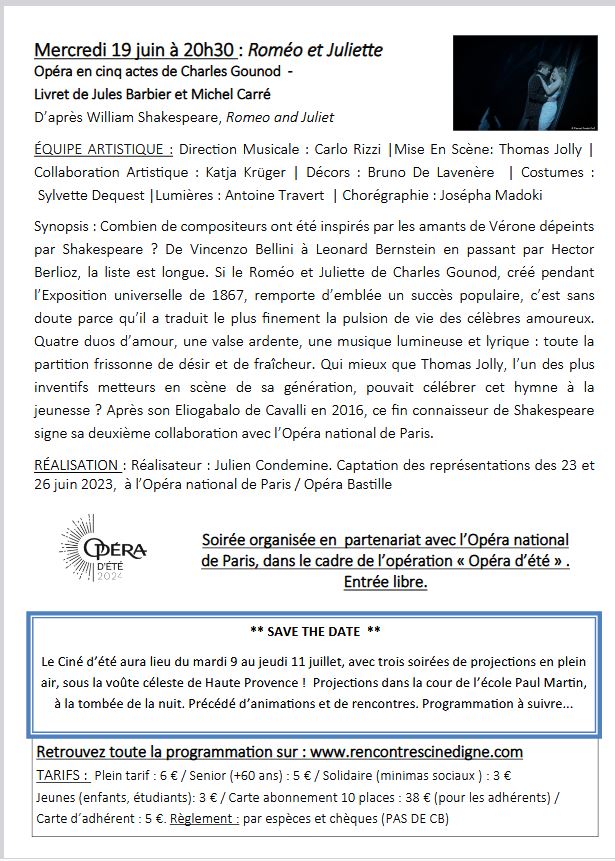 Soirée organisée en partenariat avec l’Opéra national de Paris, dans le cadre de l’opération « Opéra d’été » .