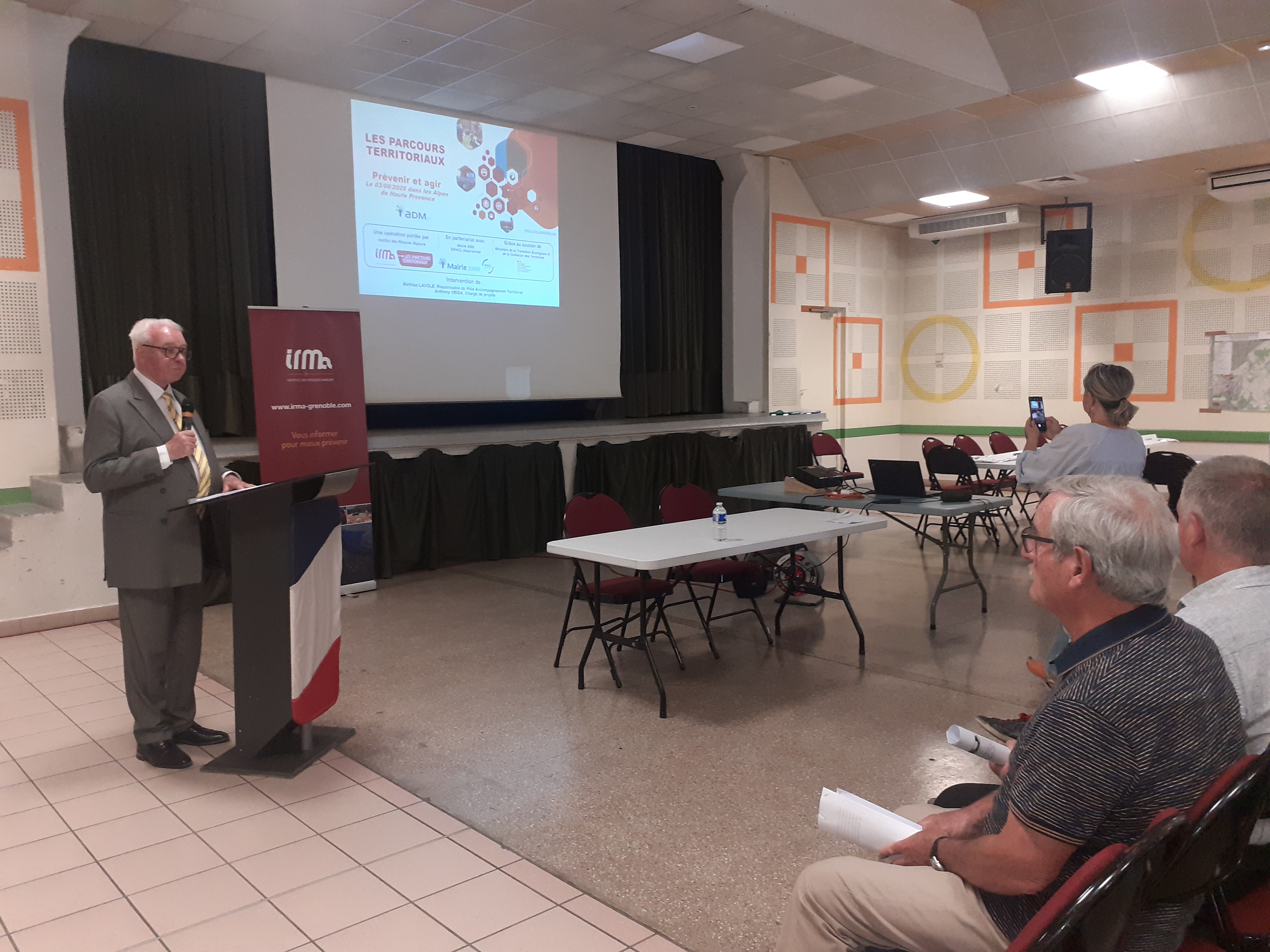 Dernièrement a Sisteron l’ADM 04, l’association des maires des Alpes de Haute Provence, organisait une réunion d’information sur les risques majeurs des communes, à l’attention des élus afin de développer une vraie culture du risque pour renforcer leur pouvoir d’agir face aux situations de crise. Au micro de Chriss Alessandri : Max Eymard adjoint à la mairie des Mées, René Villard maire de Château-Arnoux-Saint-Auban, Evelyne Falaix adjointe aux affaires scolaires, Nathalie Dotres directrice de Mairie 2000 (Association venant en aide aux associations départementales des Maires), Daniel Spagnou Maire de Sisteron et président de l’association des Maires des Alpes de Haute Provence.