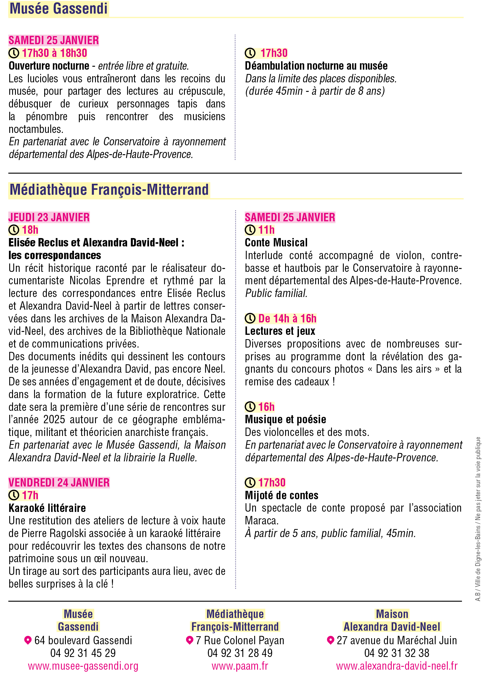 - Samedi 25 janvier – Nocturne de 17h30 à 19h