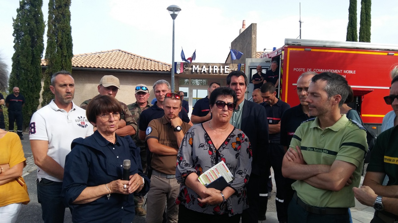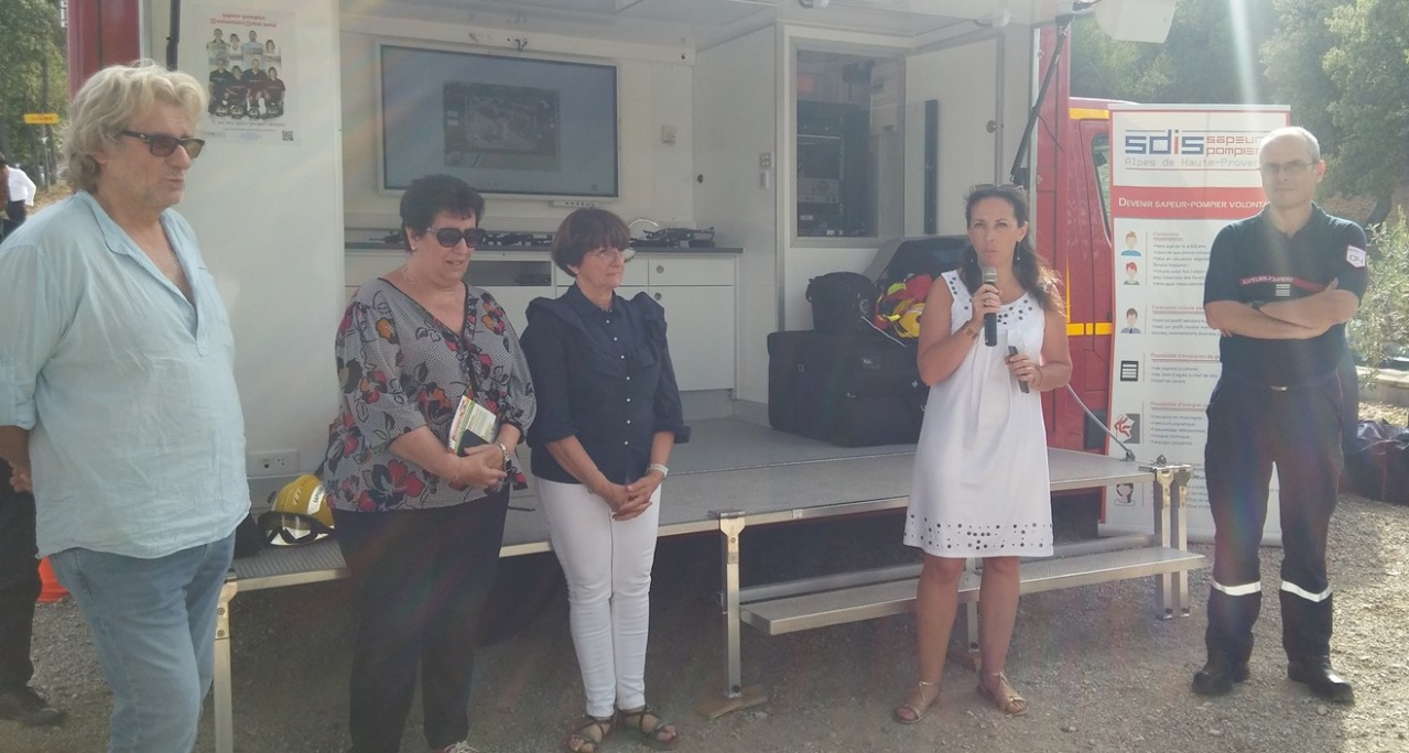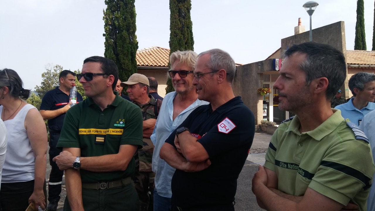 Autour de la préfète Violaine Démaret et les services de l’Etat, la présidente du Département Eliane Barreille et son collègue qui préside le SDIS 04 Jean-Claude Castel, Sandrine Cosserat pour les communes forestières des Alpes de Haute-Provence ainsi que Patrick Vivos maire de Peyruis représentant l’agglomération dignoise. Et bien sûr pompiers et agents de l’ONF autour de leurs directeurs Christophe Paichoux et Bernard Loussier.