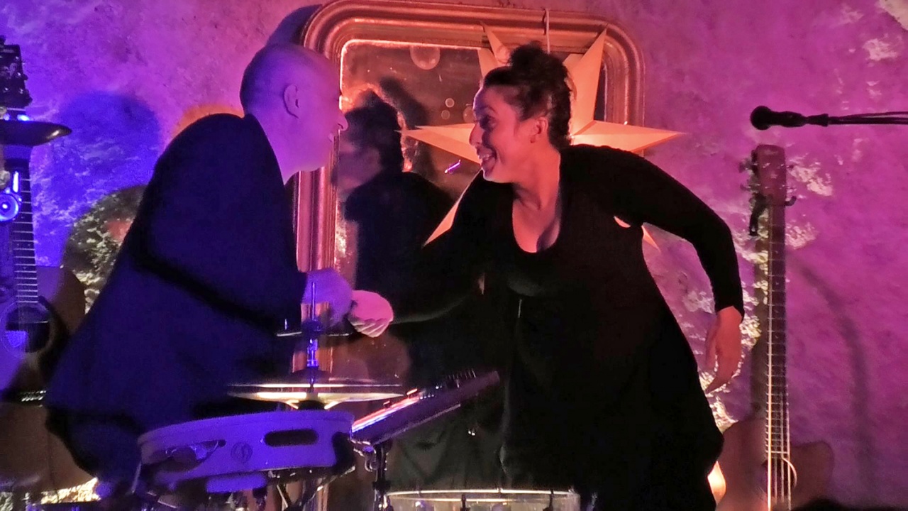 Yoanna était accompagnée à la batterie et autres percussions diverses par Mathieu Goust.