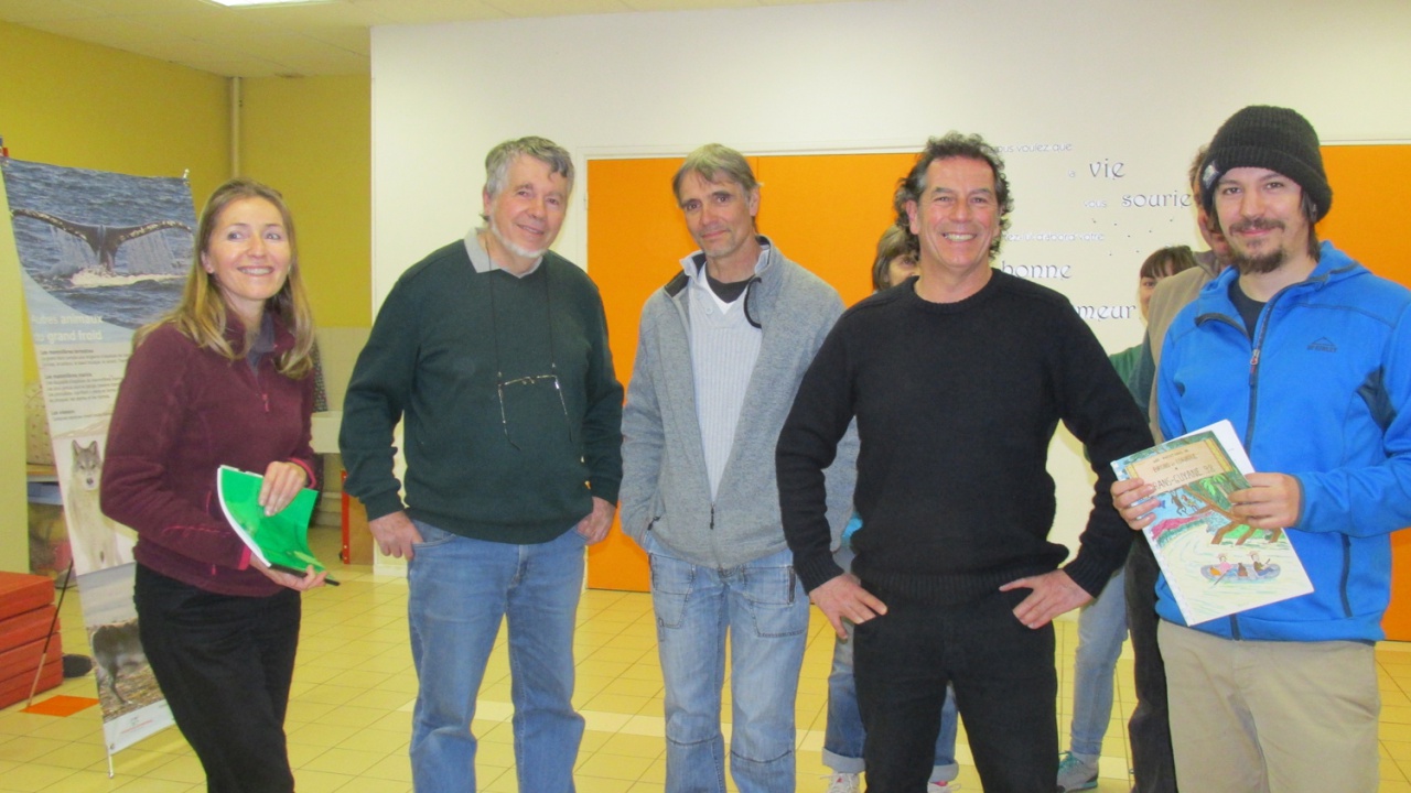 Cette rencontre est organisée par l'Association Ecosphère. Je vous propose d'écouter Corinne Pelozuelo, puis le témoignage de l'un des instituteurs Guy Audiffred, et enfin, le témoignage d'Antoine ancien élève, qui a aujourd'hui 25 ans et qui se souvient d'anecdotes, ainsi que des inquiétudes qu'il avait au sein de sa classe, pour les 2 explorateurs. Reportage Odile Frison.