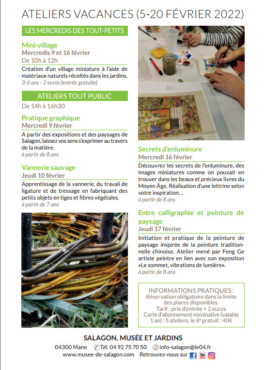 notamment des ateliers prévus pour les vacances scolaires de février.