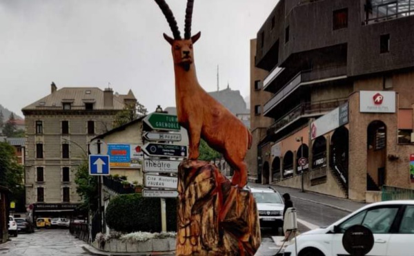Depuis hier, le rond-point du centre-ville accueille un bouquetin en bois de mélèze. C'est l'oeuvre de l'artiste local Jérome Abraini de l'Atelier...