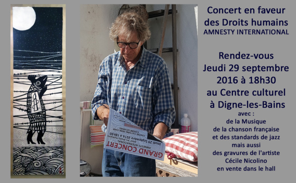 Concert pour Amnesty Jeudi 29 septembre 18h30 au Centre Culturel René Char - 28/09/2016
