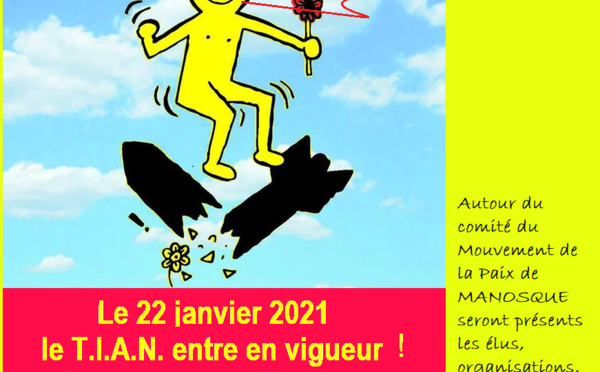 Le Mouvement de la paix de Manosque et ses environs appelle à un rassemblement pour visibiliser et fêter l’entrée en vigueur du Traité sur ...