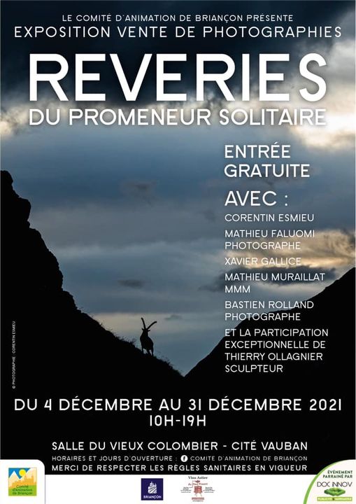 Rêveries du promeneur solitaire est une exposition de photographies mettant a l'honneur notre magnifique vallée et nos talentueux photographes. Avec la participation exceptionnelle de Thierry Ollagnier, sculpteur à Briançon. Les 11 et 12 décembre et du 18 décembre au 1er janvier de 10h à 19h, découvrez cette exposition dans la salle du Vieux Colombier dans la cité Vauban. Xavier Galice, photographe amateur nous fais découvrir son univers et répond aux questions de Laura Giraud.