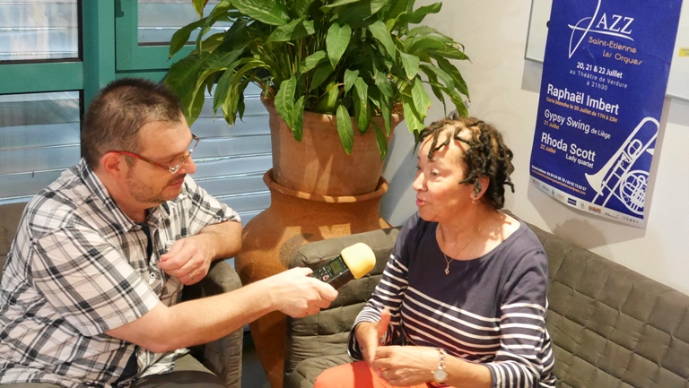 Rhoda Scott organiste de légende était en concert à Saint-Etienne… Les Orgues. Heureuse coïncidence ! Ce n’est pas tous les jours que nous avons l’occasion d’avoir une légende du Jazz dans nos contrées et l’équipe de Saint-Etienne les Orgues Animation nous en a donné la possibilité ce 22 juillet au soir. Le temps n’étant pas de la partie, les organisateurs avaient dû trouver une solution de repli et l’auditorium jouxtant la médiathèque fut choisit en grande hâte. Au départ, Rhoda Scott (celle que l’on surnomme Barefoot Lady : la femme aux pieds nus, plus pratique pour jouer les basses) et son mythique orgue Hammond C3 de 1960 et sa cabine Leslie, devait jouer en quartet avec 3 autres ladies mais Lisa Cat-Berro indisponible a été remplacée au pied levé par le frère de la saxophoniste Sophie Alour Julien, lui-même excellent trompettiste. Enfin, Julie Saury aux drums a complété l’ensemble. Doté d’un humour d’une finesse exquise, Rhoda Scott a emmené son groupe sur un répertoire groovy et swing, composés de morceaux interprétés par notre organiste préférée, mais aussi puisés dans les compositions de Michaël Jackson, Wayne Shorter et Herbie Hancock et aussi Sophie Alour ! La version de « Stompin’ at the Savoy » restera inoubliable pour beaucoup. Juste avant le concert Jean-Marc Léca a pu rencontrer la musicienne et se délecter de son accent charmant…