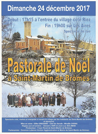 C’est un spectacle traditionnel qui raconte la Nativité à la façon du peuple de Provence. Et depuis plus de 10 ans, Saint-Martin de Brômes, petit village de 500 âmes à proximité du Lac d’Esparron en propose une interprétation exceptionnelle. Le spectacle intergénérationnel est donné en déambulation à travers les rues du village dans une ambiance chaleureuse. Produite par le foyer rural de Saint-Martin, l’opération bénéficie des aides de plusieurs participants très au fait de la chose scénique et les acteurs et chanteurs ont su progresser au fil des années. La Pastorale de Saint-Martin de Brômes est aussi un spectacle son et lumière qui draine plusieurs centaines de spectateurs. Ce dimanche, le public a rendez-vous à l’entrée du village, côté Riez dès 17 h 15 pour un spectacle de rue étonnant. Je vous propose d’écouter le maire de Saint-Martin de Brômes, Jean-Christophe Pétrigny qui a participé, bien sûr, à plusieurs éditions de la Pastorale aux côtés de ses administrés.