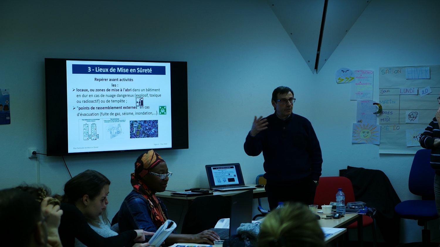 Soutenue par la DREAL PACA et en partenariat avec la DDCSPP, l’objectif est de soutenir la professionnalisation et l’accompagnement des projets à vocation éducative. Cette formation s’est déroulée sur deux jours dans les locaux de la Ligue de l’Enseignement. Elle s’est adressée à des stagiaires préparant le BP JEPS (brevet populaire jeunesse éducation populaire et sportive) et à des animateurs professionnels. Il s’agit de s'interroger sur la vulnérabilité d’un territoire et d'apprendre les consignes de sécurité associée. Dans un contexte marqué par des évènements à caractère anxiogène, il est important de former les professionnels de l’éducation à agir en cas de situation exceptionnelle. Le 04 est soumis aux risques majeurs que sont les avalanches, les inondations, les séismes et les feux de forêt. La vallée de la Durance est sur une faille sismique et il y a 3 sites Seveso !