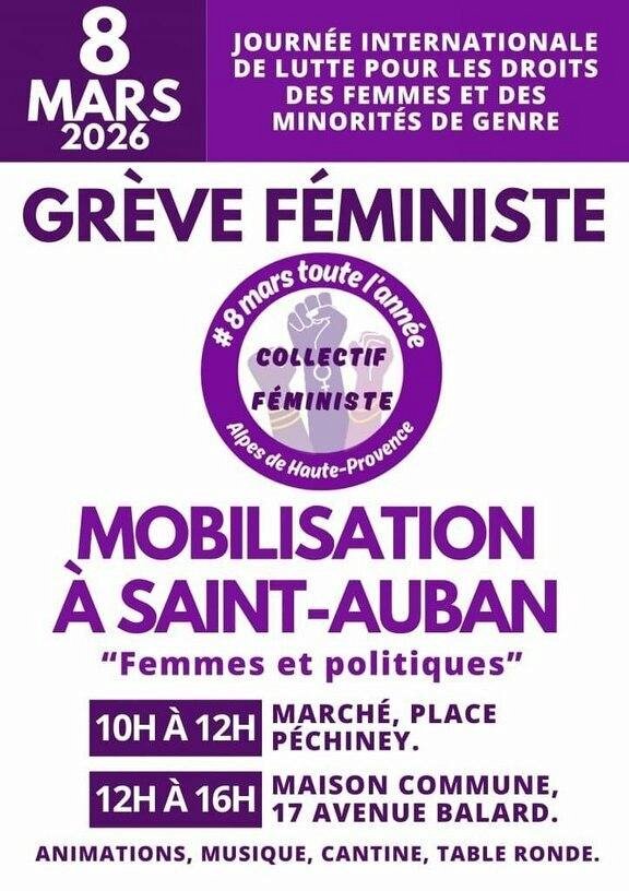 Accompagné de deux chorales : les tortues libres et le drapeau rouge, le Collectif #8mars toute l'année propose un temps d'échange sur le marché de Château-Arnoux-St-Auban, suivi d'une table ronde autour du thème "femmes et politiques". Louise, membre du collectif, est notre invitée pour expliquer les particularités de ce temps fort.
