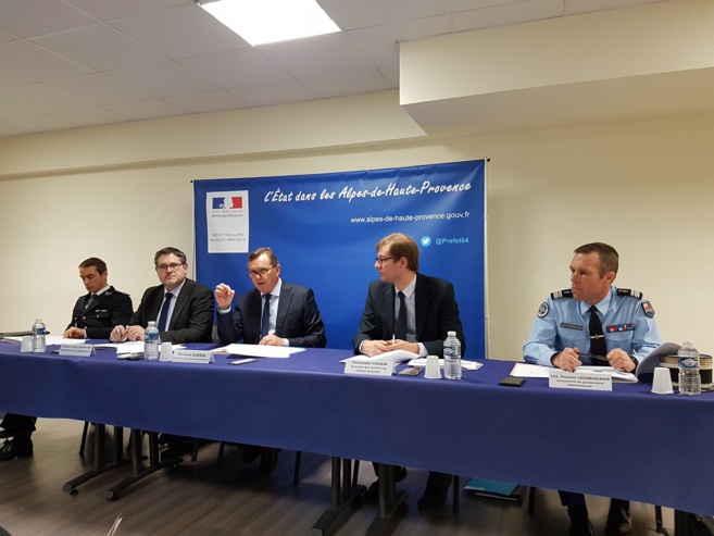 Comme chaque début d’année, les services de sécurité des Alpes de Haute-Provence dressent le bilan l’année écoulée lors d’une réunion présidée par le préfet. Le préfet Bernard Guérin observe une amélioration de la situation générale en 2017. Mais si le nombre d’atteintes aux biens a diminué, celui des cambriolages reste élevé sur les secteurs de Manosque, et entre Sisteron et Pierrevert, les effectifs seront donc renforcés par les forces de sécurité dans ces zones. Gros point noir : la sécurité routière, avec 30 tués dont 16 personnes originaires du département, ce qui veut dire qu’elles auraient pu être, elles auraient dû être sensibilisées par des actions de prévention et de sécurité routière qui furent nombreuses. L’Etat relève un nombre de cyclistes accidentés en baisse mais aussi 2 motards tués suite à des chocs avec des animaux sauvages sur la route. Parmi les causes d’accidents de la route, 34% sont dus à une vitesse excessive. C’est pour cette raison que le préfet souligne l’importance d’appliquer la vitesse limitée à 80km/heure afin de réduire considérablement le nombre d’accidents mortels sur les voies départementales. A noter également 148 actions de sensibilisation menées et financées en 2017 et sur 6 300 contrôles routiers effectués, 456 permis de conduire ont été retirés, soit en moyenne plus d’un retrait par jour. Côté stupéfiants, 56 affaires de trafic avec 100 kg de stupéfiants saisis. Et au rang des projets à court terme, la police de sécurité au quotidien qui doit se développer. Tous les services de sécurité des Alpes de Haute-Provence, mais aussi ceux de l’Education nationale travaillent en partenariat afin de mieux éradiquer toutes formes de délinquance, et de trouver des réponses pénales adaptées. Le préfet Bernard Guérin au micro d’Odile Frison.