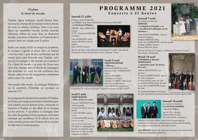 Cette année, la 39 ° édition du Festival de musique ancienne de Simiane-la-Rotonde aura lieu du 31 juillet au 10 août. Un festival étonnant, placé sous le signe du mythe d’Orphée et qui se déroule dans l’étrange édifice qui lui sert d’écrin.