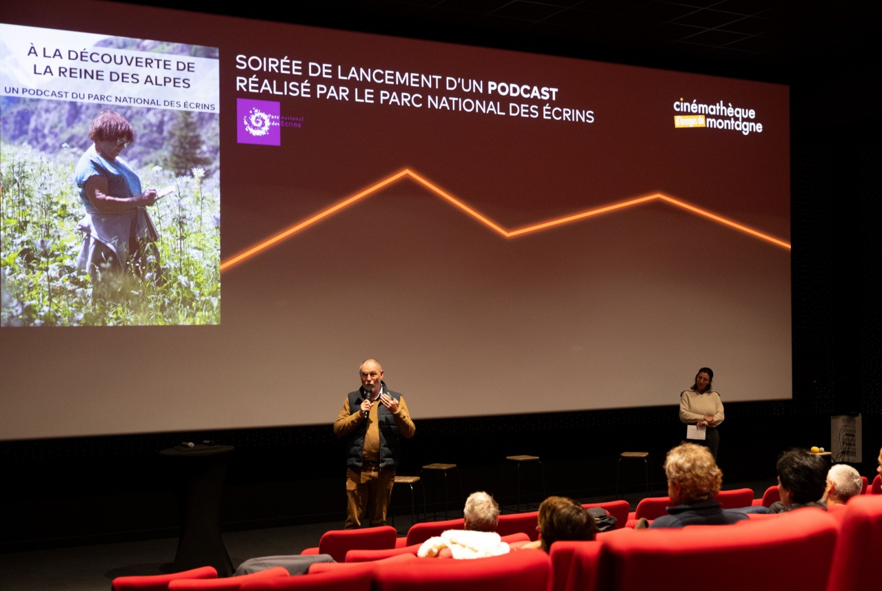 Mardi 10 décembre 2024, le Parc National des Ecrins organisait une soirée de lancement pour présenter le premier épisode de son podcast : "Explorations sensorielles et poétiques". Dans cet épisode, intitulé "A la découverte de la Reine des Alpes", le public et les auditeur.ice.s sont invité.e.s à se plonger dans une autre perception de la nature, sans la vue.