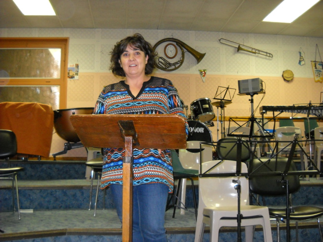 Au micro de Chriss Alessandri la Présidente de l’Harmonie présente la formation et donne plus de détails sur le concert à venir. Marie-Pierre Baronian