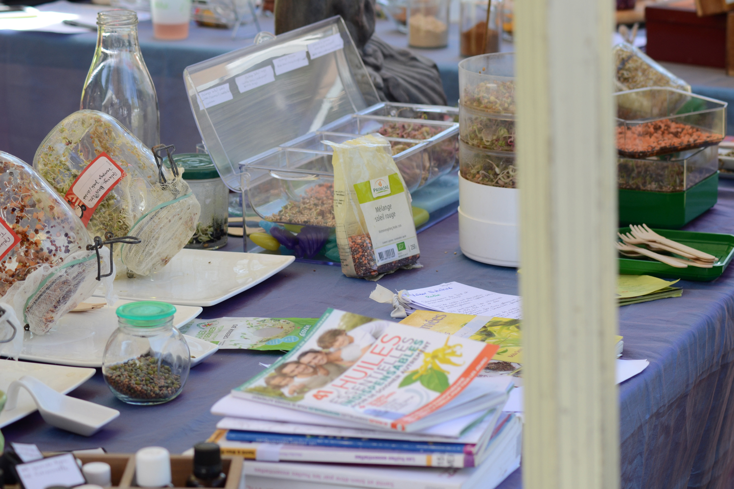 Leurs vitamines sont indispensables pour une alimentation hélas souvent déséquilibrée. Dans le cadre des Jardins en fête, Céline Cordat, adhérente de l’association « A fleur de pierre » tenait un stand particulier. Elle proposait au public curieux et attiré par les jolies couleurs des graines germées, de goûter aux différentes variétés en expliquant leur valeur nutritive. Ajouter quelques graines dans un sandwich s’avère être une idée originale, nutritive et goûteuse qui séduit beaucoup les enfants. Un autre avantage : il n’est pas nécessaire d’avoir un jardin pour faire ses propres graines germées. Céline Cordat, a suivi une formation de jardinerie et travaux paysagers à Carmejane. Elle est aujourd’hui stagiaire à l’association A fleur de pierre. Céline répond avec enthousiasme aux questions d’Odile Frison.