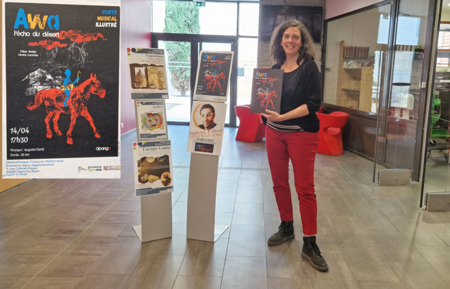 Céline Verdier autrice, conteuse, musicienne présente le spectacle qui aura lieu à la médiathèque de Digne les Bains à 17h30 Vendredi 14 avril 2023. Entrée libre. Séance de dédicace à l'issue de la représentation avec Nicolas Lacombe et Céline Verdier.