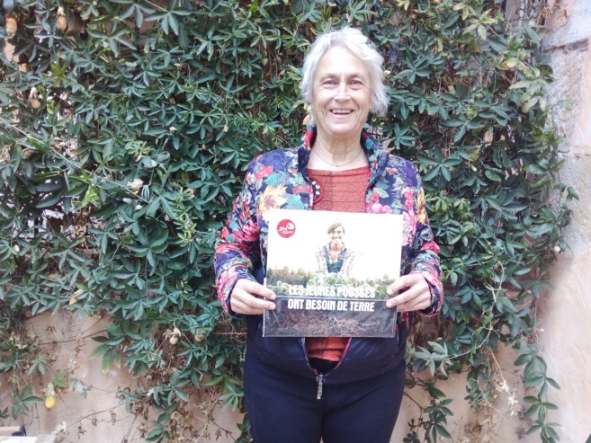 Béatrice Trélaün , bénévole de l'association Terre de liens Paca groupe de Forcalquier présente les valeurs et le fonctionnement de cette structure qui fait « pousser des fermes » partout où elle peut.