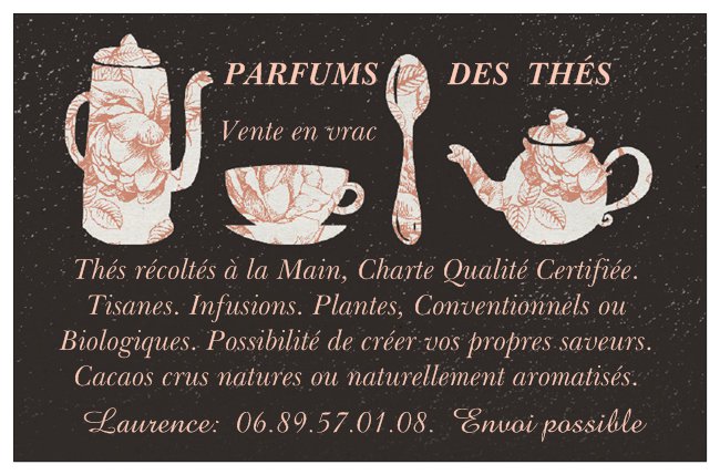 Le thé est une boisson millénaire. Originaire du Triangle d’Or, dans le Yunnan en Chine, sa culture et sa consommation a évolué au fil des siècles, devenant un produit noble incontournable et souvent érigé en art. Mais aussi pour varier les plaisirs, on trouve de nombreux arômes. Dans sa boutique « Parfum des Thés », Laurence propose de très bons thés biologiques du monde entier : noirs, verts, blancs, roiboos et infusions, natures ou parfumés et proposés en sachet de 100 g et avec le sourire. Elle assure également de nombreux points de dégustation sur les marchés, magasins Bio et différents commerces sur Briançon. Laurence Valory répond aux questions de Laura Giraud.