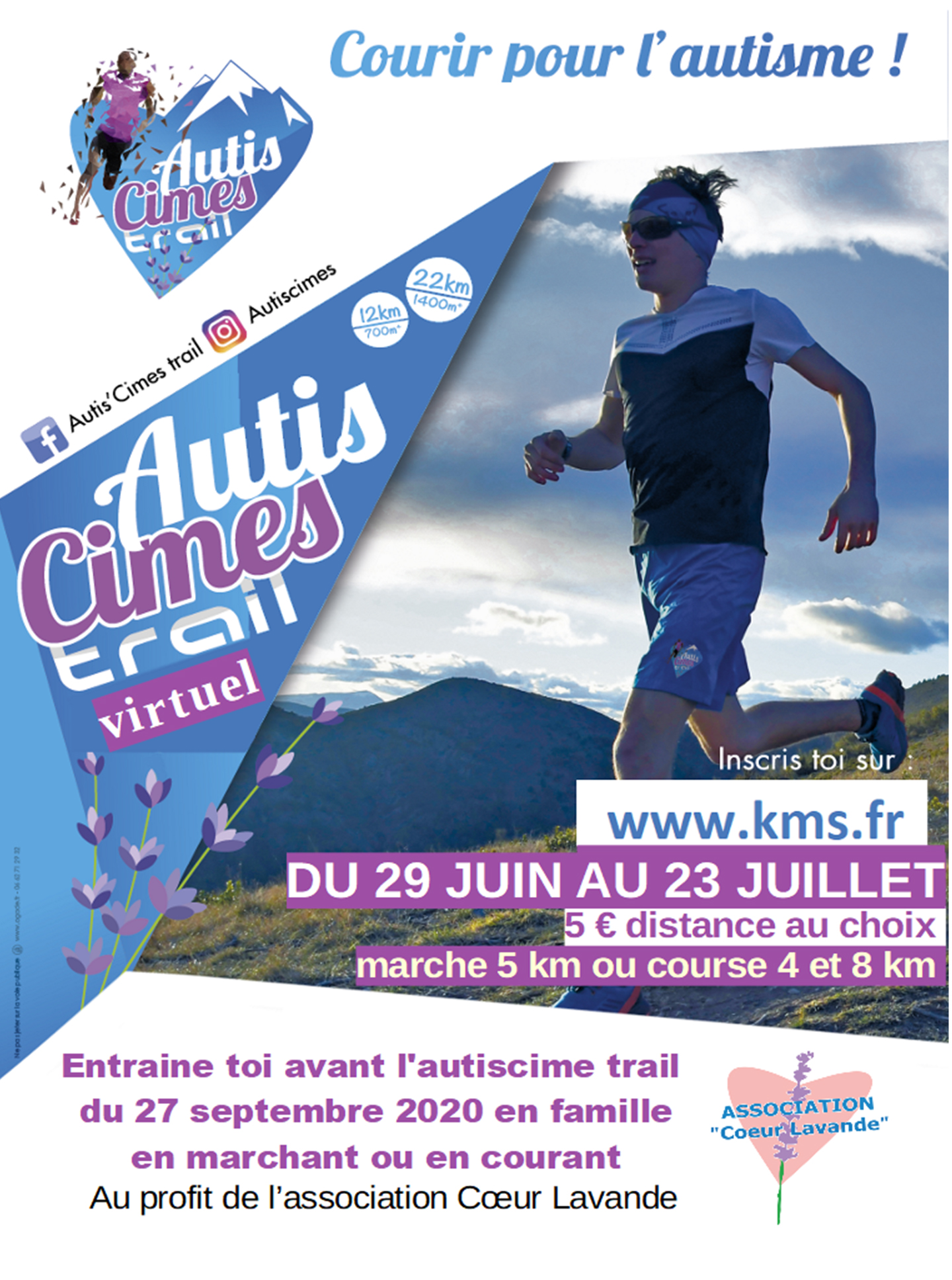 3 possibilités de s’entraîner cet été pour une belle cause, du 29 juin au 23 juillet. L’Autis’Cimes trail virtuel est en préambule de l'autisc'imes trail du 27 septembre 2020 à Digne les Bains.