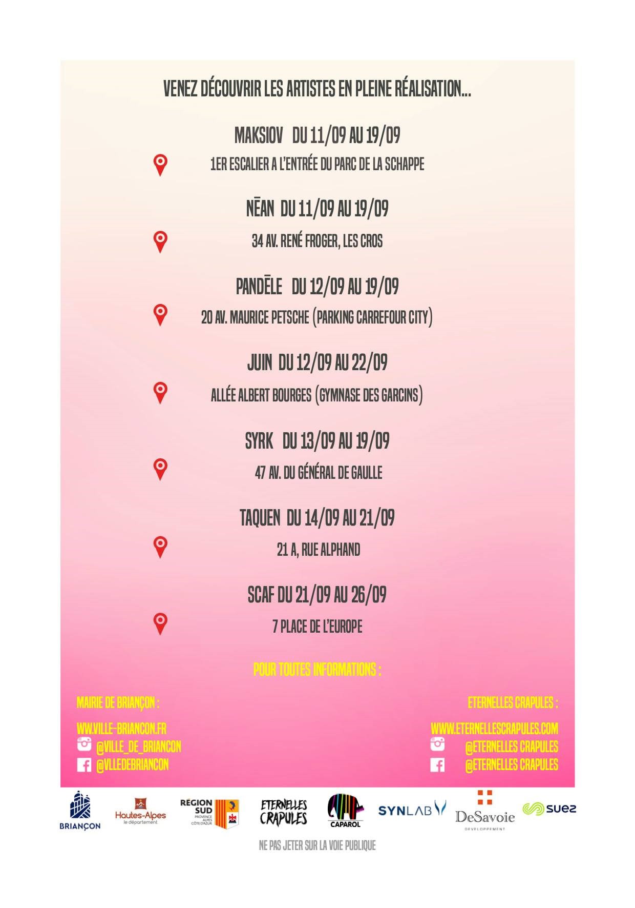 Première édition du 11 au 26 septembre 2021. Un Street Art Festival de dimension internationale voit le jour à Briançon pour les 3 prochaines années ! Avec les artistes "Eternelles Crapules", c'est un programme de graff sur 6 façades par an qui s'installe à Briançon pour habiller et embellir notre ville. Lucas, organisateur du festival répond aux questions de Laura Giraud.