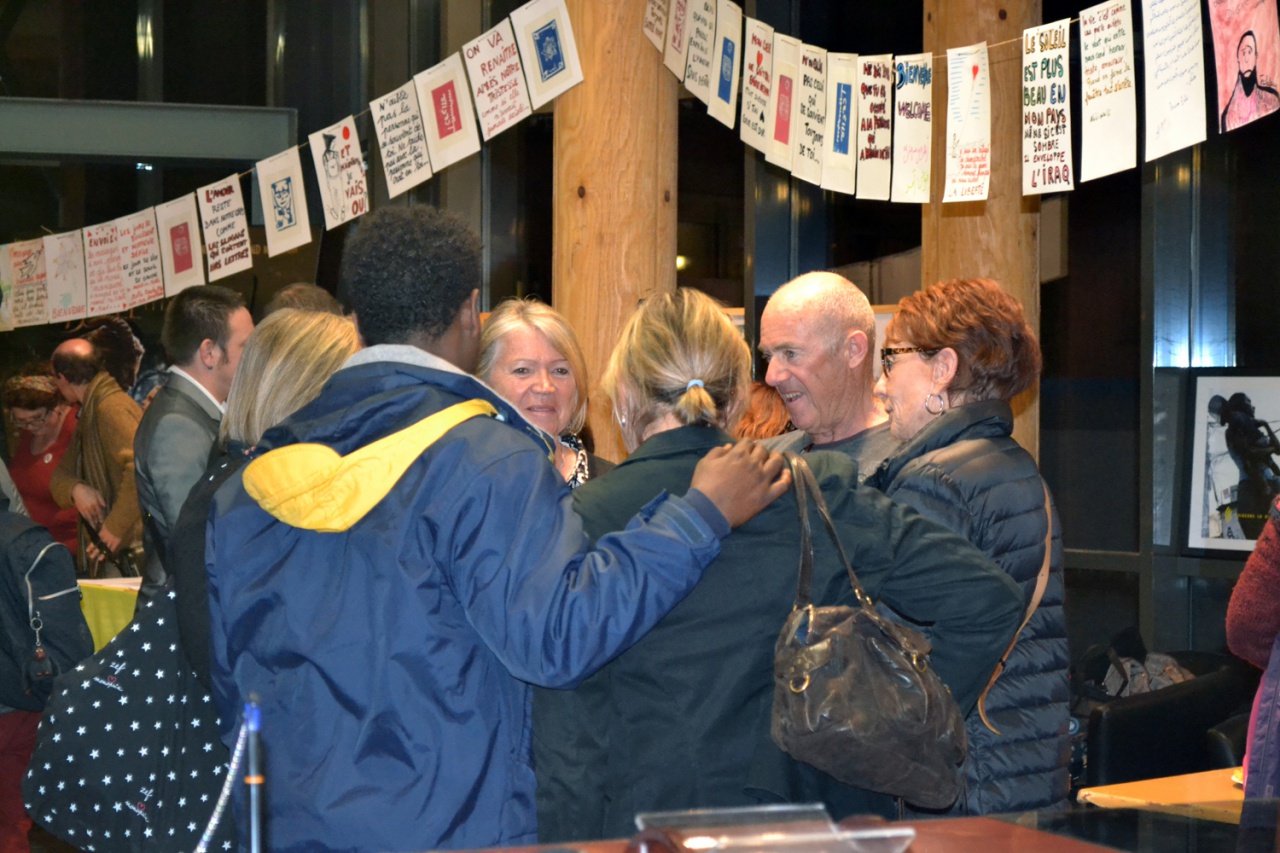 Vif succès et un bel élan de solidarité pour la projection de « Bienvenus », une comédie sur l’accueil des migrants. La projection du film norvégien de Rune Denstad Langlo a attiré plus de monde qu’Amnesty International avait imaginé. Cette comédie grinçante se déroule dans un vieil hôtel pour réfugiés. C’est dans le cadre du Festival du film sur les droits humains qu’a été organisée la soirée ciné-débat par Amnesty au cinétoile à Digne-les-Bains. A la grande surprise des organisateurs, la salle s’est très vite remplie de spectateurs, et il a fallu ouvrir une seconde salle pour faire entrer les nombreuses personnes qui souhaitaient participer à la soirée. Au total il y a eu 187 spectateurs qui se sont ensuite regroupées dans la 1ère salle pour assister et participer au débat. Je vous propose d’écouter au micro d’Odile Frison, Régis Coulange Conseiller d’Amnesty International pour la région, puis le témoignage de Jean-Noël Fessy membre de l’association « Roya Citoyenne » de Vintimille, une association qui vient en aide aux réfugiés des 2 côtés de la frontière franco-italienne.