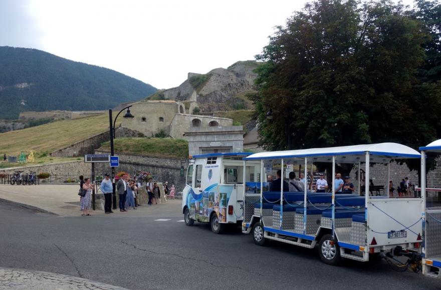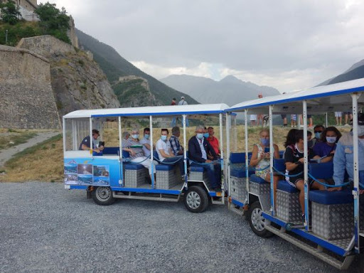 Arnaud Murgia, Maire de Briançon, a inauguré le 21 juillet 2020 le départ du 1er petit train touristique de la ville en présence de nombreux élus et des représentants des Transports Urbains Briançonnais. Ce petit train embarquera jusqu'à la mi-septembre inclus, vacanciers et Briançonnais, pour un tour d'environ 1 heure au départ du Prorel, un circuit commenté à travers la vieille ville et le centre ville de Briançon. La balade est gratuite et ouverte à tous. Vous devrez juste être muni de votre masque qui est obligatoire pour prendre place à bord. Au micro de Susannah Wright, Jérôme Fine conducteur du train et quelques vacanciers.