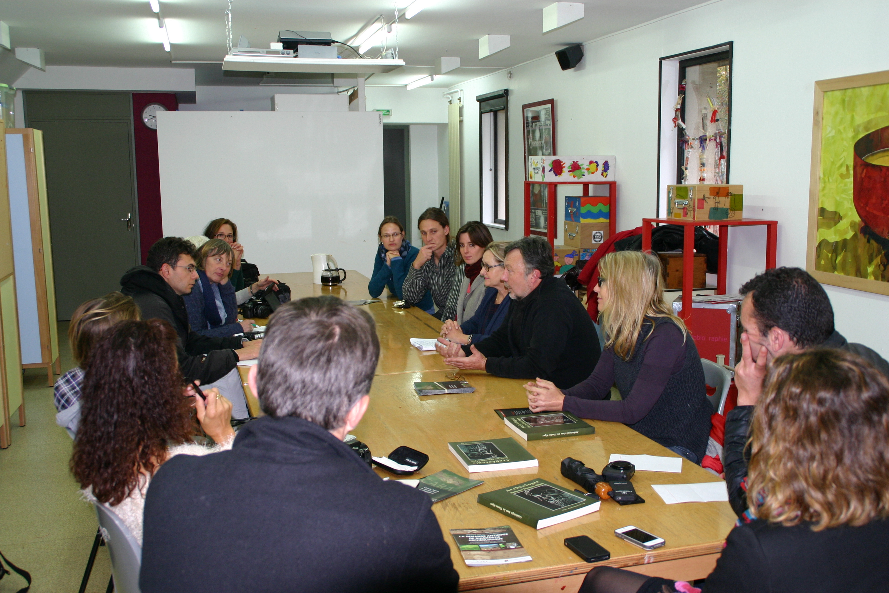 Un diagnostic réalisé il y a quelques années a révélé un potentiel archéologique qui a conduit à des fouilles gérées par l’INRAP avec un protocole strict. Un site exceptionnel a été mis au jour. Il laisse apparaitre une partie « habitat » bordée d’un fossé la séparant d’une zone « activité » - déjà pourrait-on penser -. Par recoupement avec d’autres découvertes d’un même type en d’autres lieux, cet espace constitué de foyers à pierres chauffantes pourrait avoir servi au boucanage et au séchage de différentes viandes. Ceci ne pourra être confirmé que par les analyses en cours en laboratoire. Au micro de Gilles Rey, Bénédicte Ferotin, vice-présidente en charge du patrimoine culturel au conseil départemental confirme cette étonnante découverte, puis Roger Boiron, Adjoint Directeur Interrégional de l’INRAP présente son organisme et le cheminement de ces fouilles.
